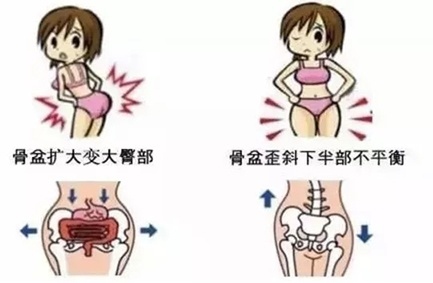 骨盆位于我们人体的正中间,起着承上启下的重要作用。耻骨联合不闭合,在张开的状态下,很容易引起错位,稍稍错位就会引起腰疼、腿疼,严重的长期错位,还会引起脊柱侧弯,还有的妈妈产后几年内一直容易崴脚。还有骨盆变宽造成屁股塌陷,小腹突出,子宫、内脏无法归位。
