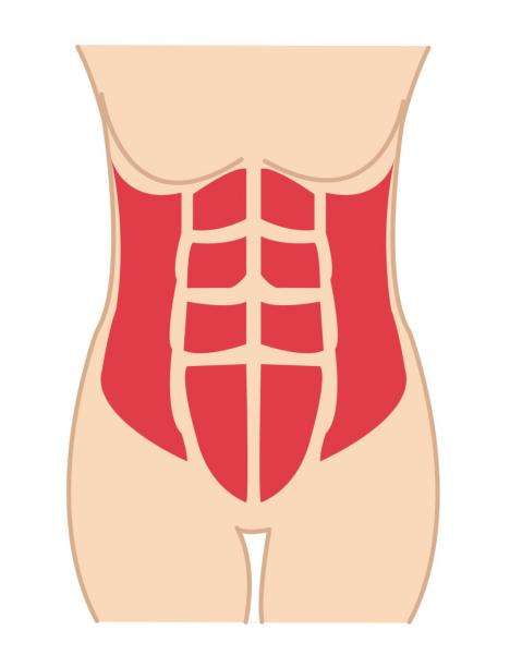 腹直肌位于腹前壁正中线的两旁,为上宽下窄的带形肌肉组织,起自耻骨联合和耻骨嵴,止于胸骨剑突和第5~7肋软骨前面。肌的全长被3~4条横行的腱划分成多个肌腹。有前屈脊柱、降胸廓、维持腹压、固定脏器位置的作用,同时对咳嗽、排便、活动等方面也起重要作用。