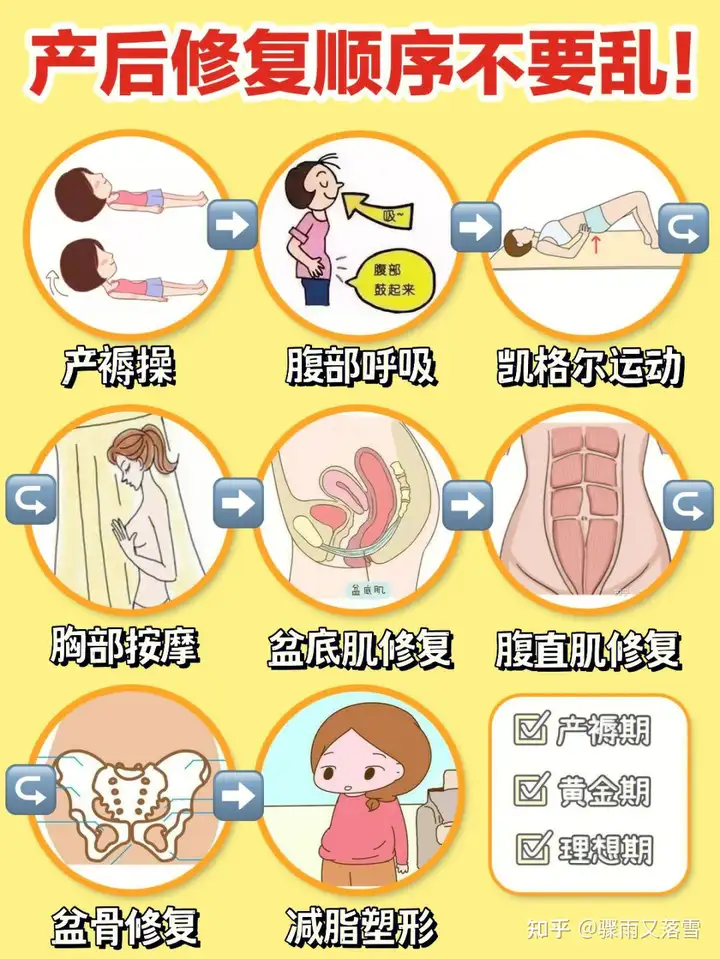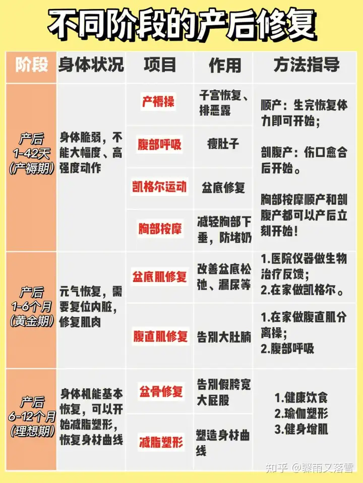 首先宝妈产后身体状况有不同阶段,所以对应这有不同的修复阶段