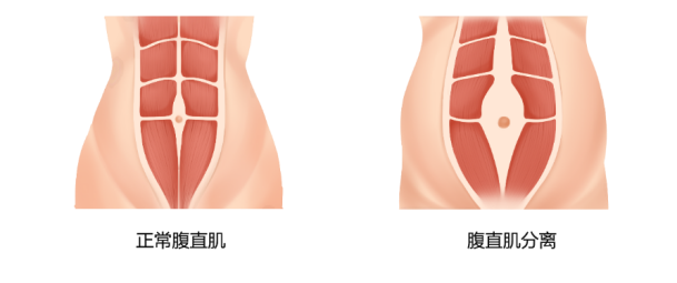 生完孩子,很多女性都会出现大肚子松垮下不去的现象,这与腹直肌分离密不可分。孕期时两侧的腹直肌从中间腹白线的位置逐渐向两侧拉伸,产后腹壁松弛,分离的腹直肌又未及时恢复到原有的原有位置,脂肪便在腹部堆积,形成了消不下去的大肚腩。